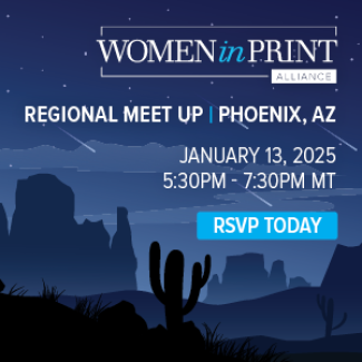 Registration is NOW OPEN! Please RSVP by clicking the ATTEND button below. Women in Print Alliance is headed to Phoenix! Join us for our very first in-person Regional Meet Up at Olive & Ivy in Scottsdale, Arizona on Monday, January 13, 2025 from 5:30PM – 7:30PM MT. We’re excited to offer women in the printing...
