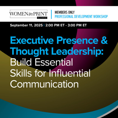 Join Women in Print Alliance members on September 11, from 2 p.m. – 3 p.m. ET, as we tackle how to be an authentic, effective spokesperson for your company and industry, while also building your personal thought leadership brand. Elevate your executive presence and command respect in any room with this dynamic workshop designed specifically for women in the print industry. Register for our Q3 Professional Development Workshop today!