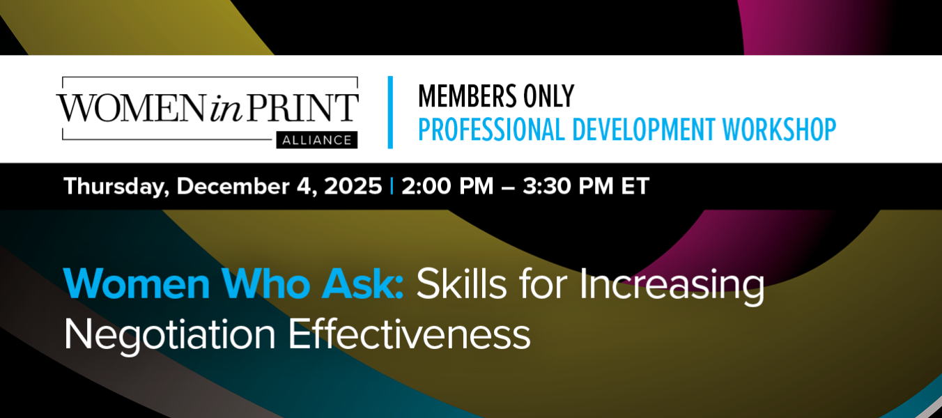 Join Women in Print Alliance members for this transformative workshop that will equip you with proven strategies to advocate for yourself in the workplace and beyond. Whether you're negotiating a salary, pitching for resources, or closing a major deal, this session will give you the tools to ask boldly and negotiate effectively.